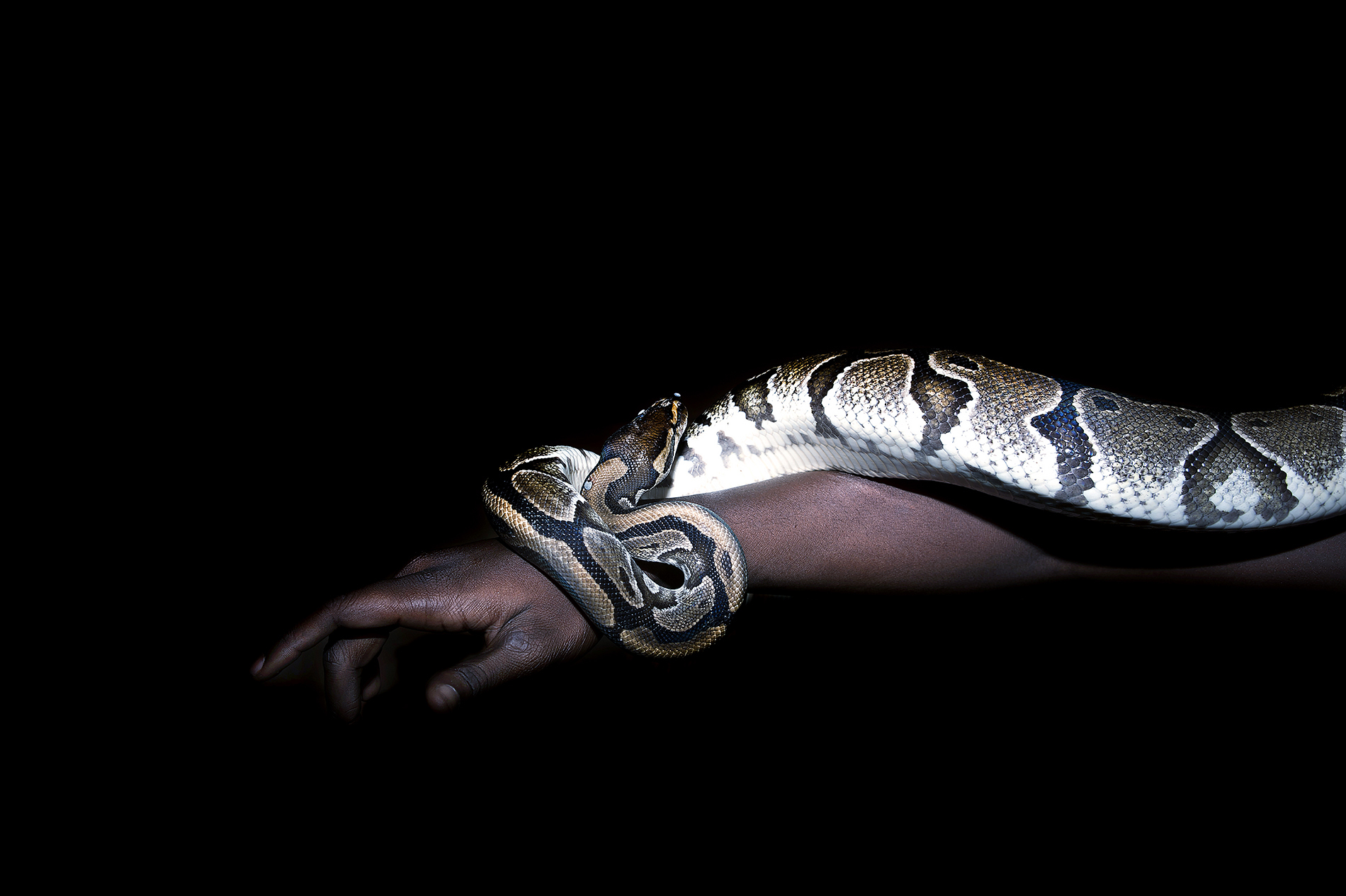 Pays où les esprits sont imbriqués au vivant, où la vie tutoie de si près la mort, où à chaque chose l’on attribue une signification seconde. La réalité qui se dessine ici contient en elle-même un au-delà, un ailleurs. L’imaginaire s’imbrique au réel pour dessiner un territoire où le visible n’existe pas sans l’invisible. La tradition orale béninoise décrit des mythes fondateurs où l’animal est symbole de sacralité, l’incarnation d’une divinité.