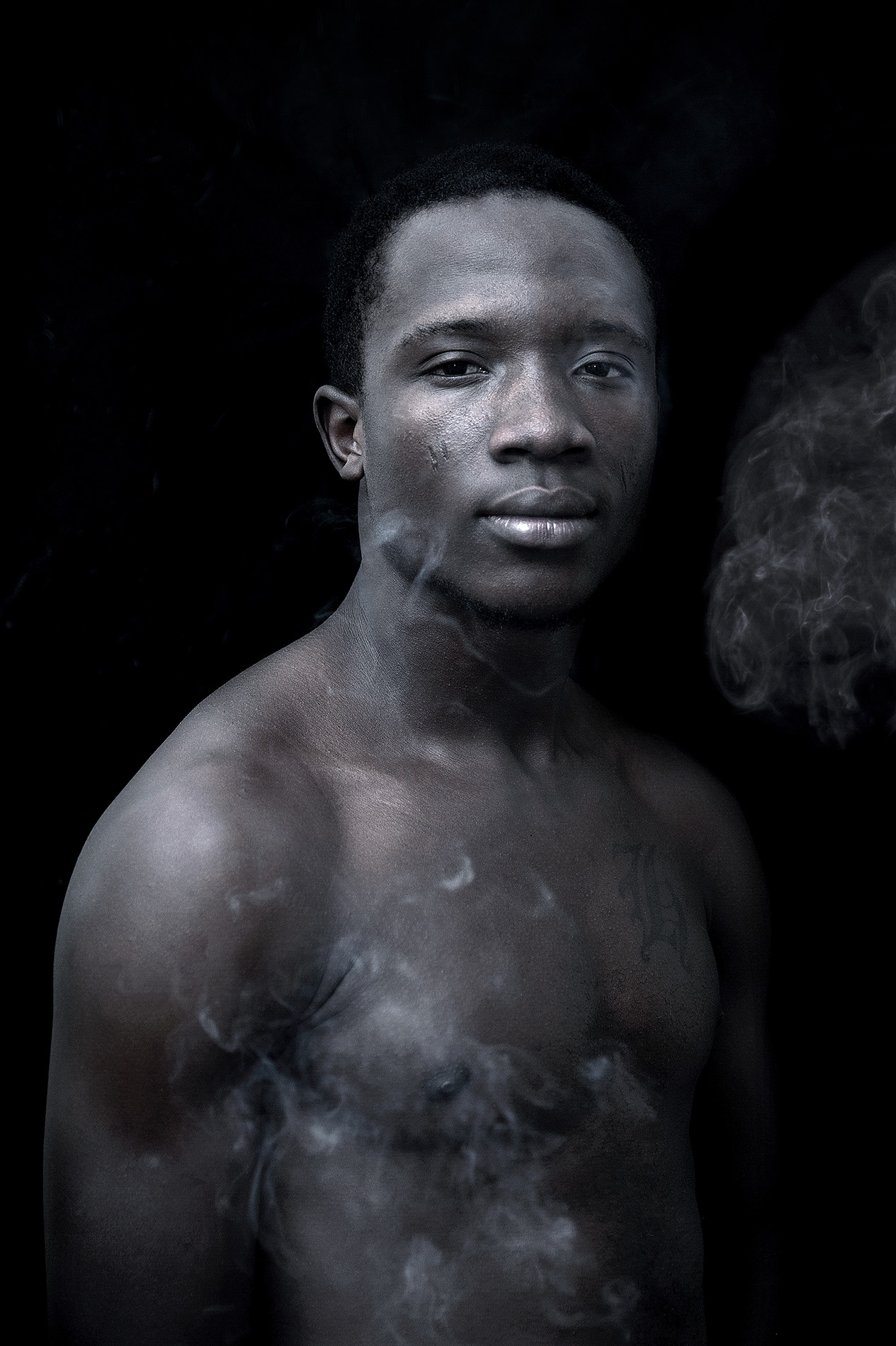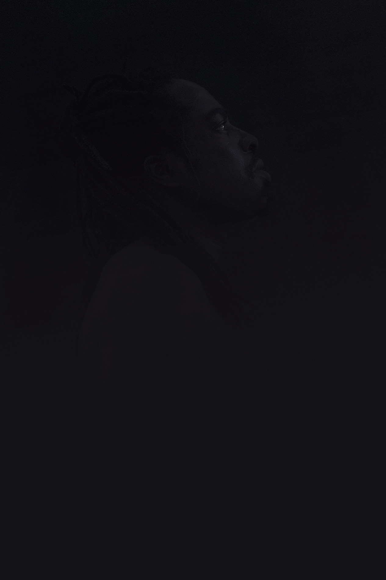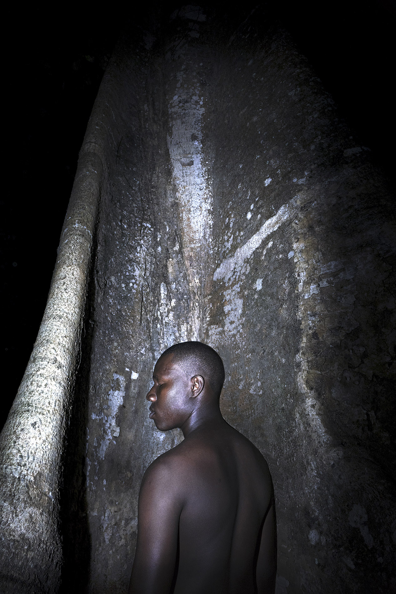 Ancrée dans cette période où la nuit prend le pas sur le jour, la série se veut sombre, sourde. Paysages et portraits d’hommes et d’animaux se répondent, dans une obscurité presque complète. Où s’arrête le monde des vivants ? Peut-on capturer la spiritualité ? En travaillant soigneusement son esthétique, Marie Leroux révèle un univers secret, évoquant le caractère imperceptible d’une religion, mais aussi la volonté du vaudou de se pratiquer discrètement. « Il y a une dualité inhérente à cette croyance : d’une part, les autels, visibles à l’entrée des villages, et d’autre part, les entités et la pratique qui demeurent invisibles », précise l’artiste.