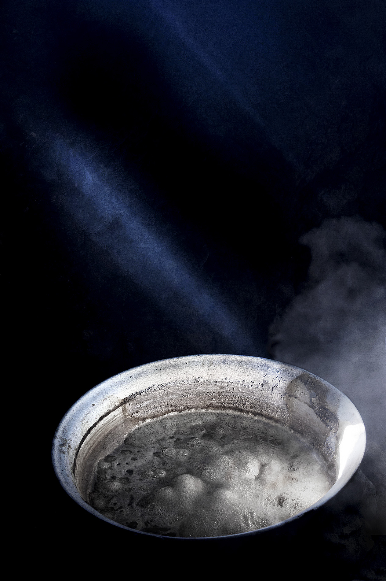 L’heure bleue est cet interstice, ce temps où la clarté cohabite avec l’obscurité. Temps suspendu, indéfinissable, entre éveil et sommeil, rêve et insomnie. Heure nébuleuse qui évoque des territoires subjectivement parcourus, vacillants, les repères se brouillant avec l’opacité de la nuit. Avec elle surgiront d’autres ombres, aux contours plus ténus, empreintes de mystère et de mysticisme.