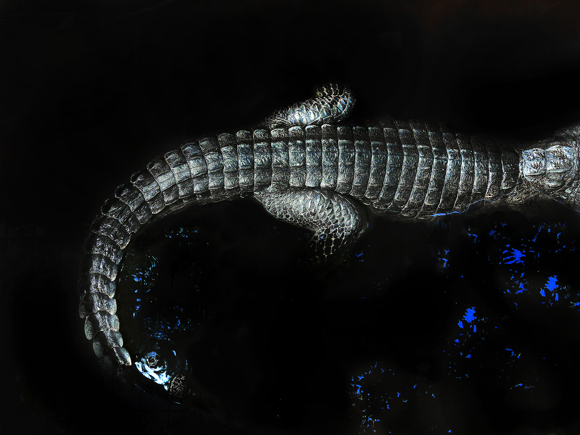 Pensée comme une série de métaphores, L’heure bleue capture les éléments de manière sensorielle. « La pratique est intrinsèquement liée aux forces naturelles, les offrandes faites aux fétiches (figures représentant les dieux du panthéon vaudou) et les cérémonies animistes permettent d’apaiser les divinités et d’attirer leur clémence. Il est question de l’histoire d’un peuple, de son lien avec l’animal qui se fait symbole de sacralité, d’une cosmogonie », rappelle l’artiste. Loin d’exposer une vision exotique du territoire, elle s’immerge au contraire dans les rites et les pratiques, représentant, à la manière de flashs visuels, les contours d’un monde étrange. Corps nus, pythons et paysages nocturnes apparaissent, voilés. Comme les bribes d’un songe qu’on essaie, en vain, de retenir ».